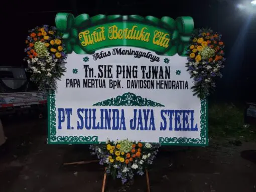Rangkaian bunga papan yang dapat mewakili rasa duka. Dengan rangkaian bunga papan ini, anda dapat menunjukkan rasa bela sungkawa atau kehilangan kepada saudara, kolega, atau orang-orang penting di hidup anda.